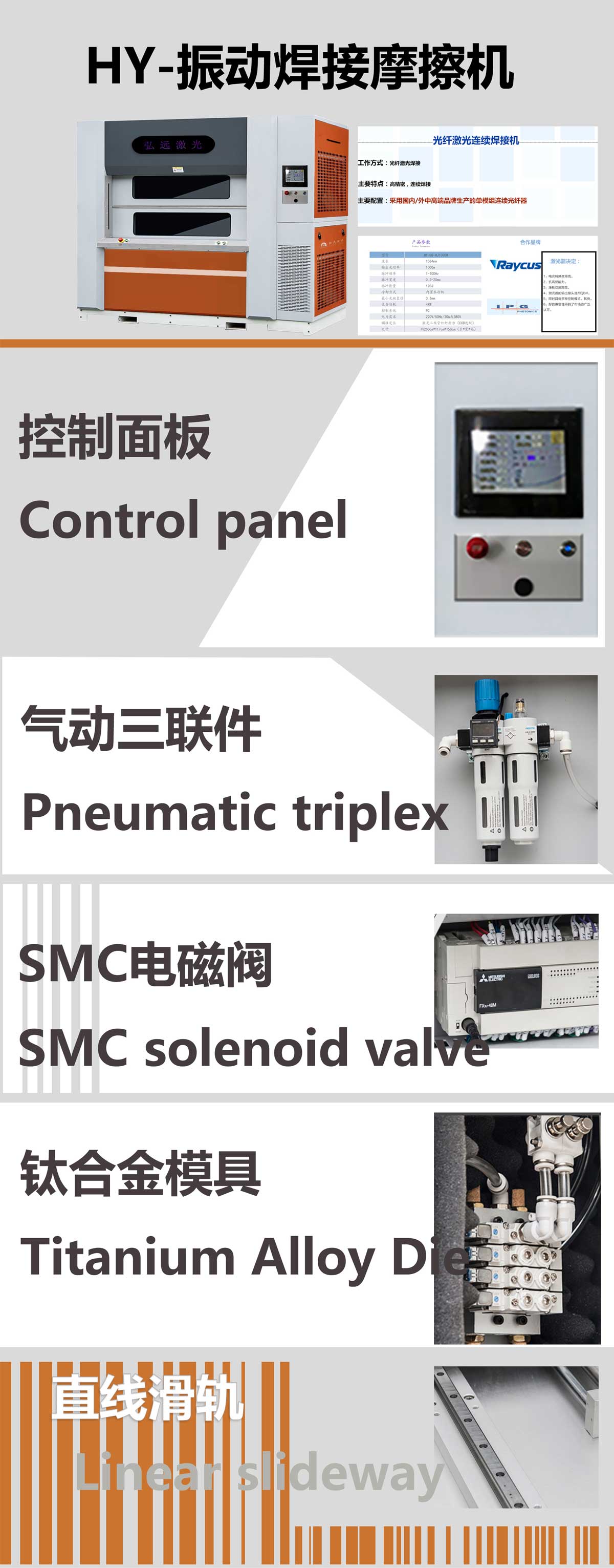 1.360度同步旋轉夾具;2.CCD視覺定位讓聚焦更精確,成本低,高效率,更具有客觀性;3.通用控制接口,兼容性強、光束均勻化度高,加工底面效果好;4.電動移動升降軸、操作起來方便效率高,不占地;