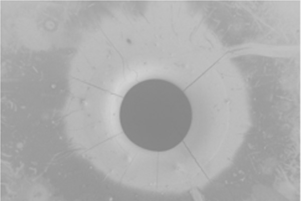 3、打裂紋時(shí),激光重復(fù)燒炙在玻璃表面形成一個(gè)不透的坑,熱量的重復(fù)傳導(dǎo)使玻璃自然炸裂;